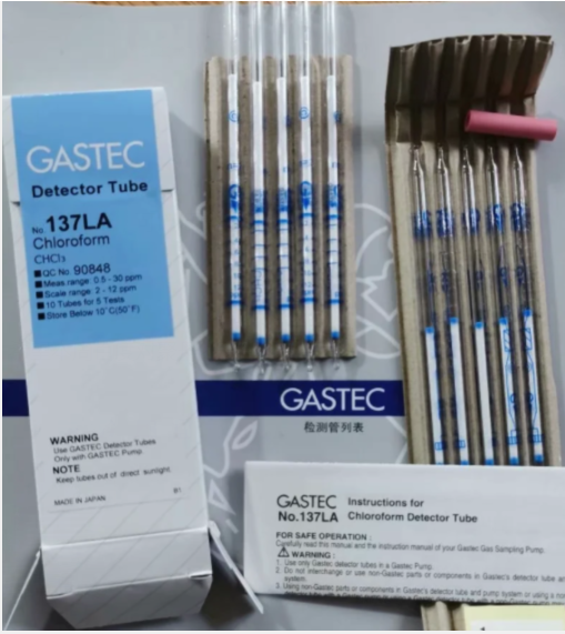 GASTEC氯仿气体检测管采用的是双管检测,在使用时和气体气体检测管的区别就是需要在气体检测管前增加一个预处理管,先讲环境中的氯仿经过处理后变成气体检测管能够检测出的气体即可得到环境中氯仿的浓度。